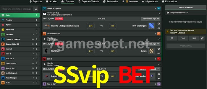 O SSvip Bet oferece uma grande seleção de opções de apostas em e-sports com probabilidades competitivas